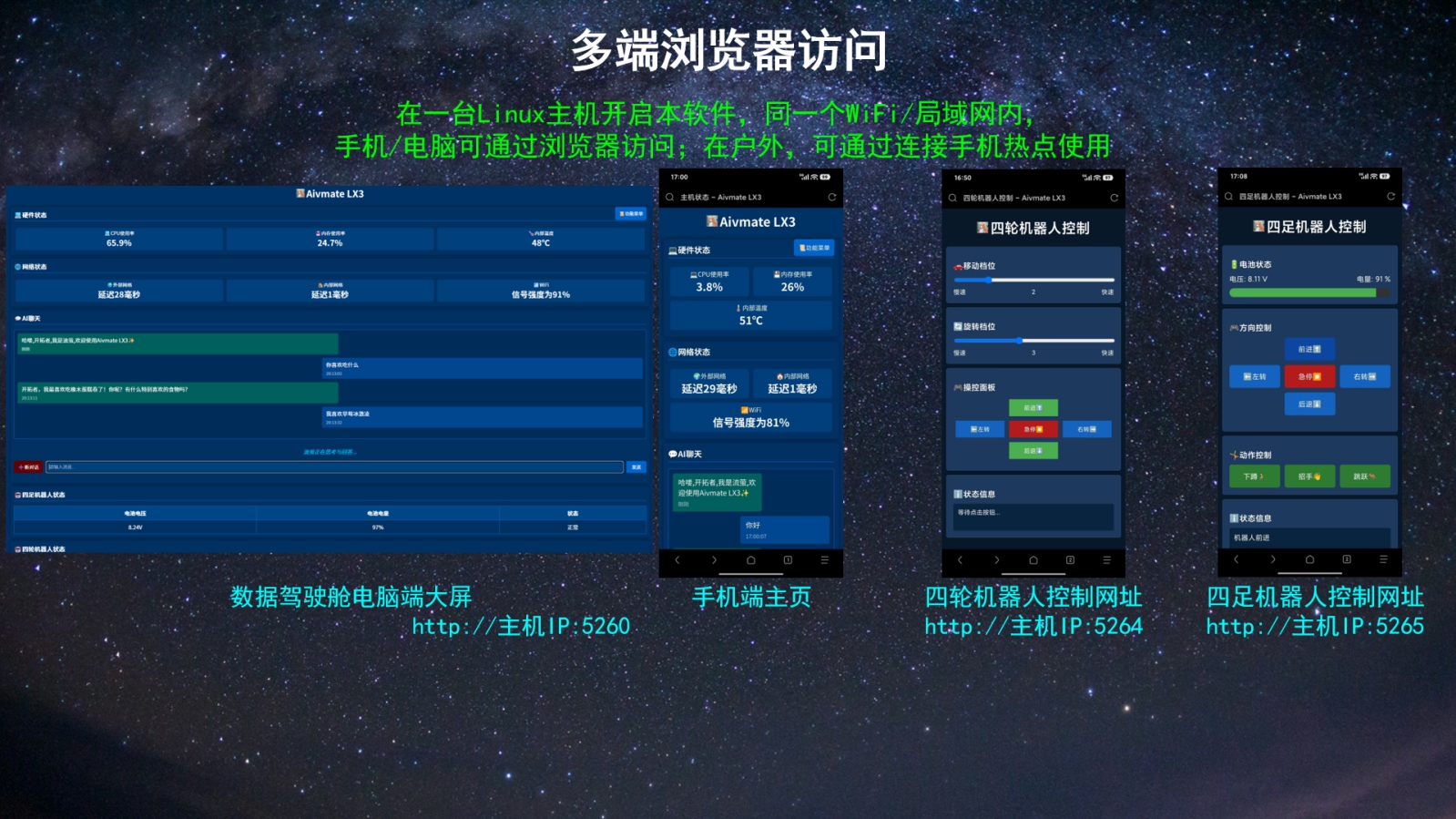⑥ 多设备全平台访问:在Linux主机上运行后,局域网内的设备(如电脑、手机、平板)可通过浏览器展示虚拟伙伴。