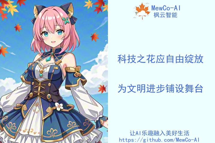 · MewCo-AI精心打造的枫云平台,是一个正在积极推进的大型AI公益项目。项目组推出了业界领先且广受用户欢迎的枫云AI虚拟伙伴探索版,并开源了社区版和Linux版。与开源社区积极合作,聚焦于普惠新型AI技术并提供便捷的使用方式,使用户专注于享受AI的乐趣。